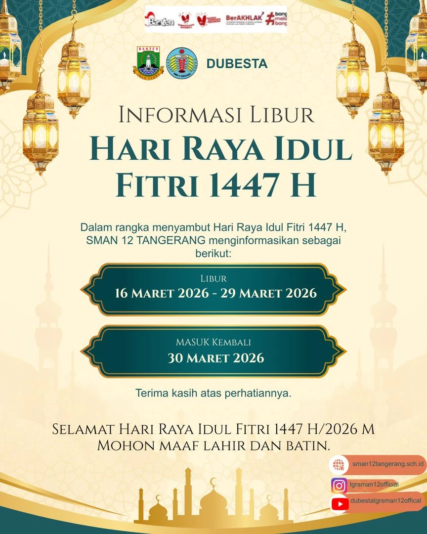 Tahun ajaran baru telah dibuka. Jadilah bagian dari keluarga besar SMAN12 TANGERANG KOTA.